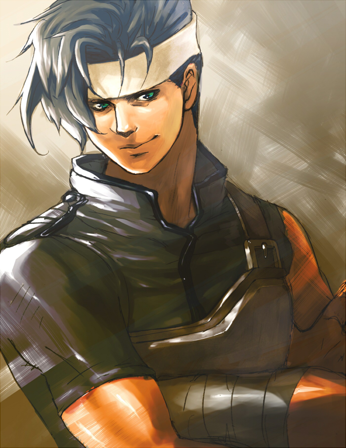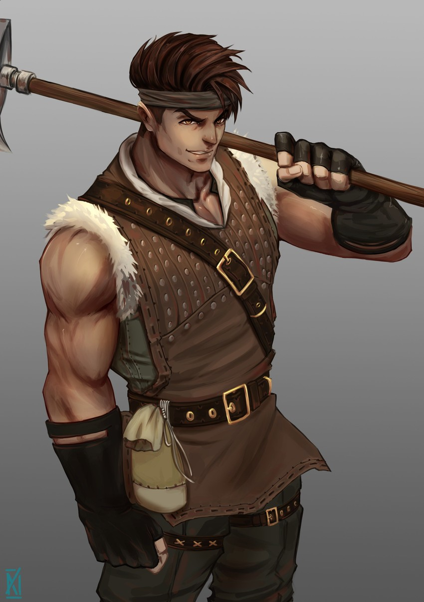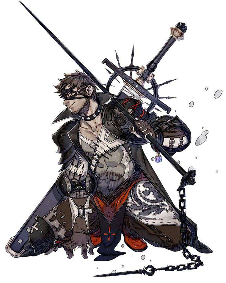 -William and Daniel take stock of the man addressing them. A lanky individual with the subtle touch of strength adorning his exposed arms. a black mantle and torso armor, along with a matching headguard, give him the look of an esteemed bandit, or a vagrant