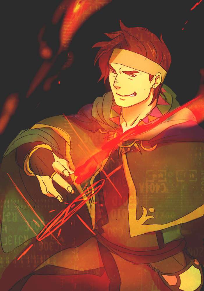 -Owen, catching his fall with his lance, slowly rises to peer at Jagan