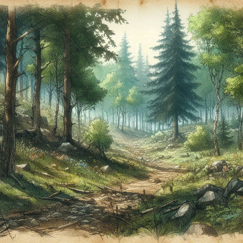 -The group traverses Clearthorn Forest. The sun graces the trees with glittering reposes.